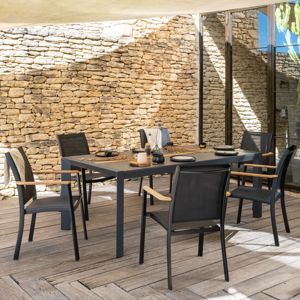 Table De Jardin En Aluminium Et Teck Noir 8 Places Massimo